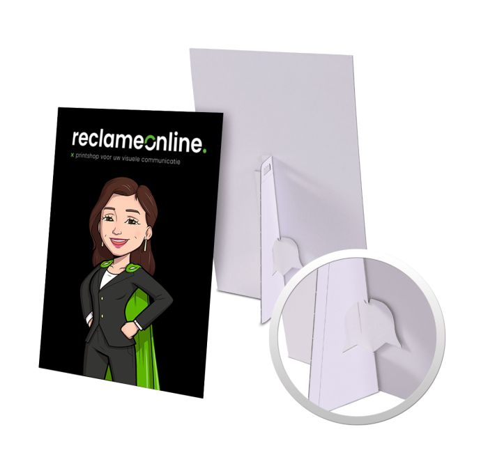 Our counter displays are available to measure. Their sturdy cardboard support makes them easy to stand upright. Upload your personal design and put your product or service in the spotlight!
