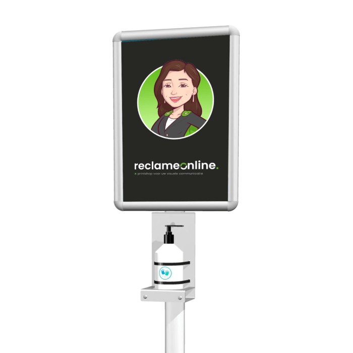 Spoor mensen aan om vaker hun handen te reinigen door de aanwezigheid van deze handgel dispenser. Zet hem in uw winkel of uw werkplaats en onze handgel dispenser helpt u eraan herinneren uw handen proper te houden! Bestel hem nu.