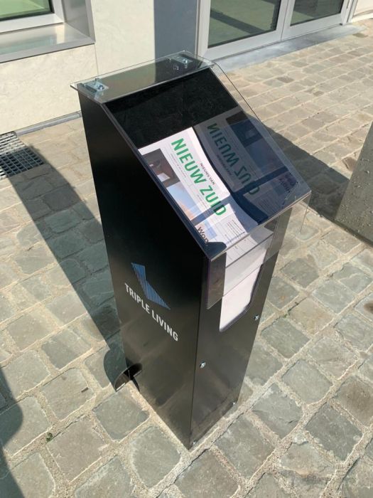 Deze brochurehouder kan aan alle zijden van een unieke print voorzien worden. Wenst u het toch liever simpel te houden? Dan kan uw logo alleen natuurlijk ook! Hij is bestand tegen de regen en kan dus zonder moeite buiten geplaatst worden. Brochurehouders worden vaak geplaatst aan de ingang van gebouwen of tentoonstellingen.